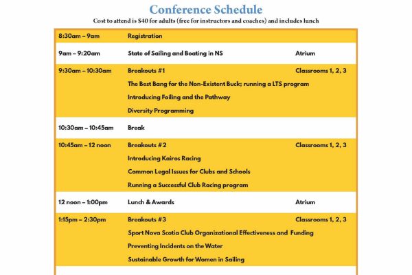 We’re excited to announce that we have released our schedule and opened registration for our Annual Sailing & Boating Conference set for Saturday, November 1 at Citadel High School in Halifax. Last year more than 80 people attended the Conference